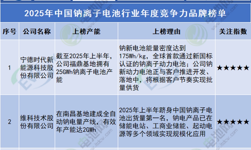實(shí)力認(rèn)證 | 維科技術(shù)榮膺鈉電競(jìng)爭(zhēng)力品牌榜單No.2,僅次于寧德時(shí)代