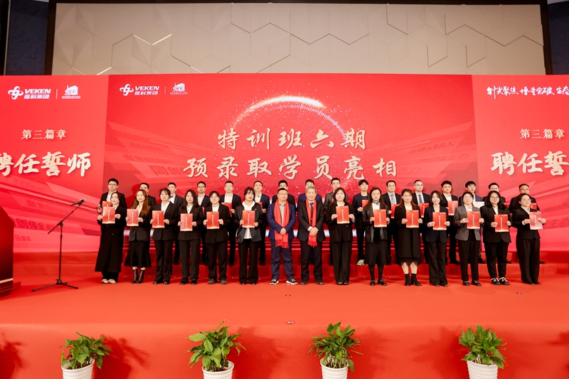 特訓(xùn)班六期預(yù)錄取學(xué)員代表也登臺亮相進行了誓師,集團人資總監(jiān)兼總干部部總經(jīng)理賁總和集團董事長、學(xué)院院長何董為學(xué)員代表頒發(fā)了預(yù)錄取通知書。